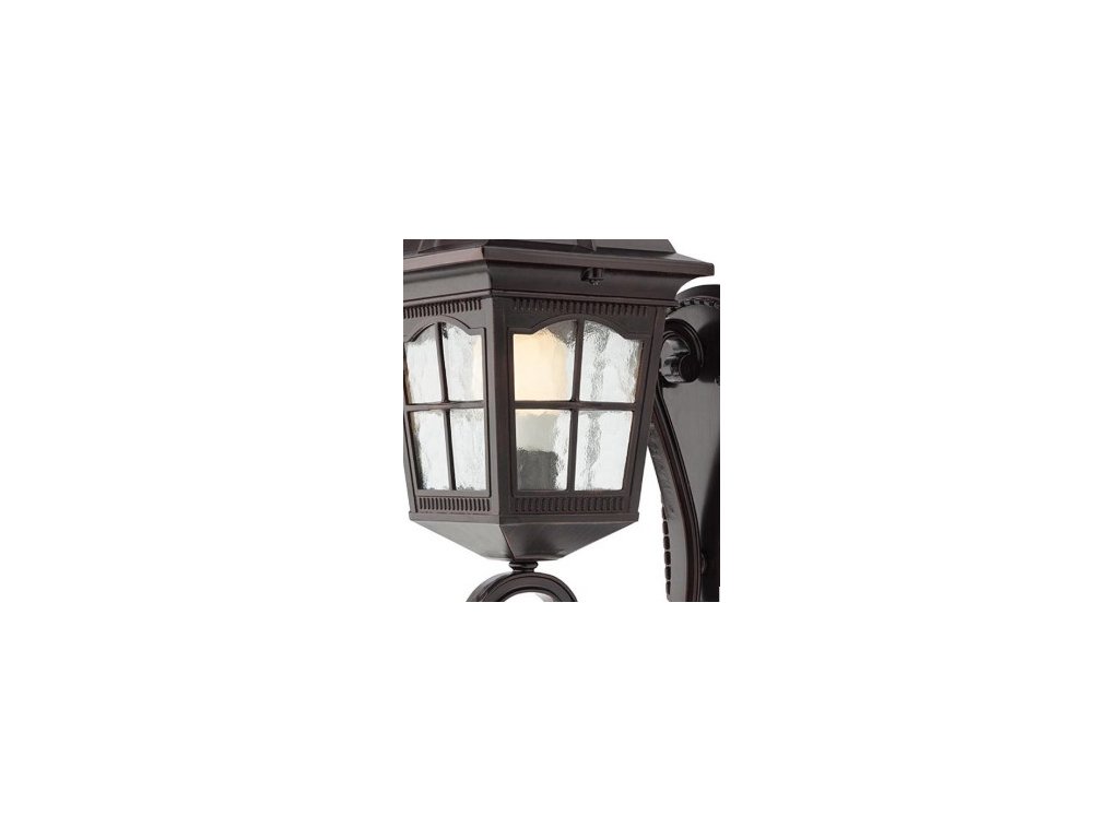 Toto moderní pojetí rustikální lucerny je nejen zdrojem světla, ale také stylovou výzdobou fasády.