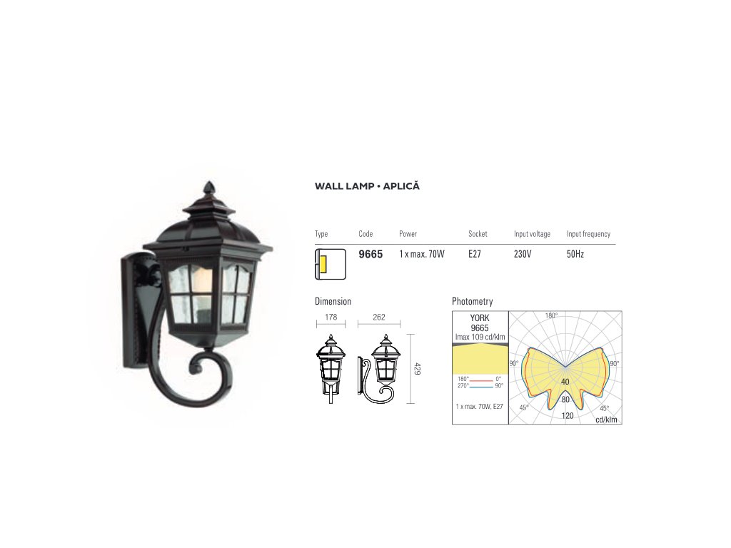 Venkovní nástěnné svítidlo s IP44 YORK 9665 z katalogu REDO GROUP 2019.
