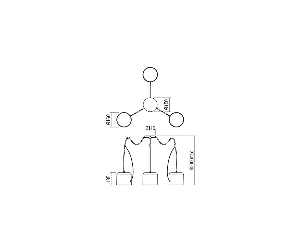 Závěsné interiérové svítidlo DODO 01-1825, struktura a tři difuzory z kovu, v lakované matné bílé barvě,